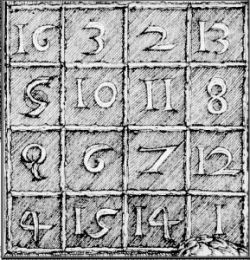Tal vez Durero eligió este cuadrado porque los dos números centrales de la última fila coinciden con la fecha de ejecución del grabado: 1514. |